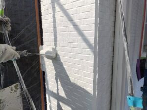 広い面はローラーを使って均一に、細かい部分は刷毛を使って丁寧に仕上げています。塗り残しやムラが出ないようにするのは、職人の経験と気配りが必要な部分です。