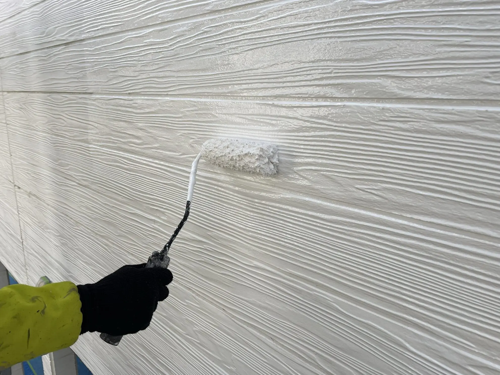 中塗りは下塗りの上に乗る工程です。下塗り(パーフェクトサーフ)が十分に乾燥・定着しているかを確認した上で施工を開始。密着不良による剥離リスクをゼロにします。