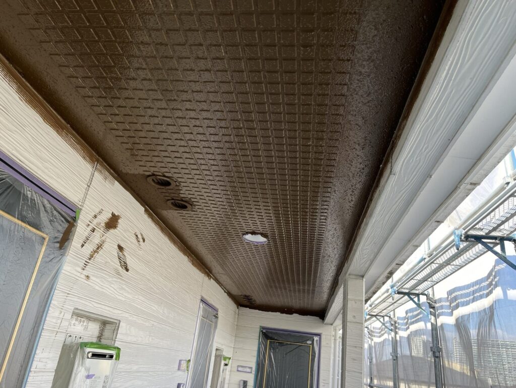 今回は、アパートの外壁塗装の中でも意外と目立つポイント、**「軒天(のきてん)」**の塗装についてご紹介します。